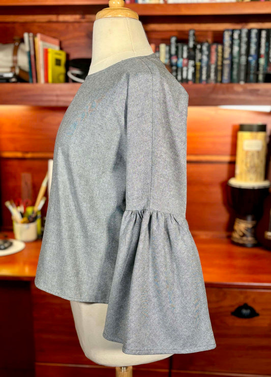 Gathered T-shirt | Blue Chambray