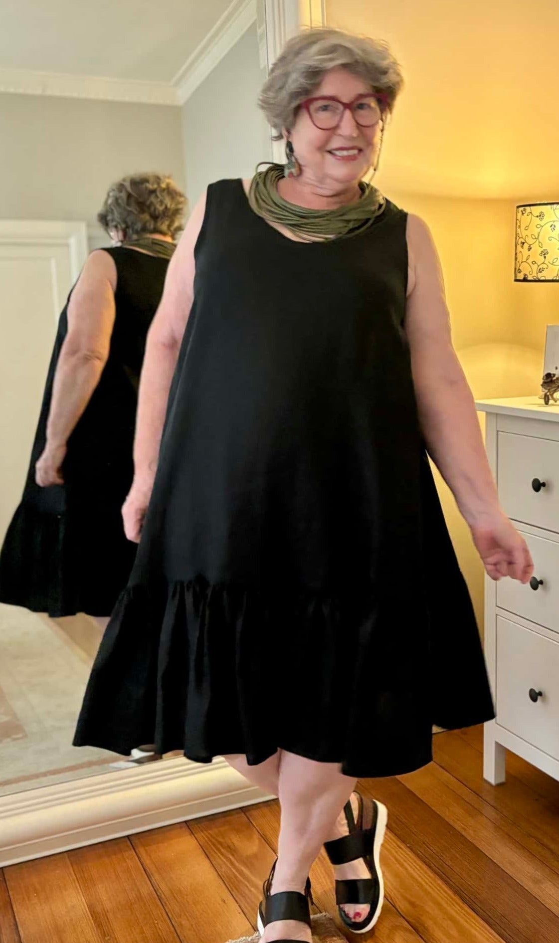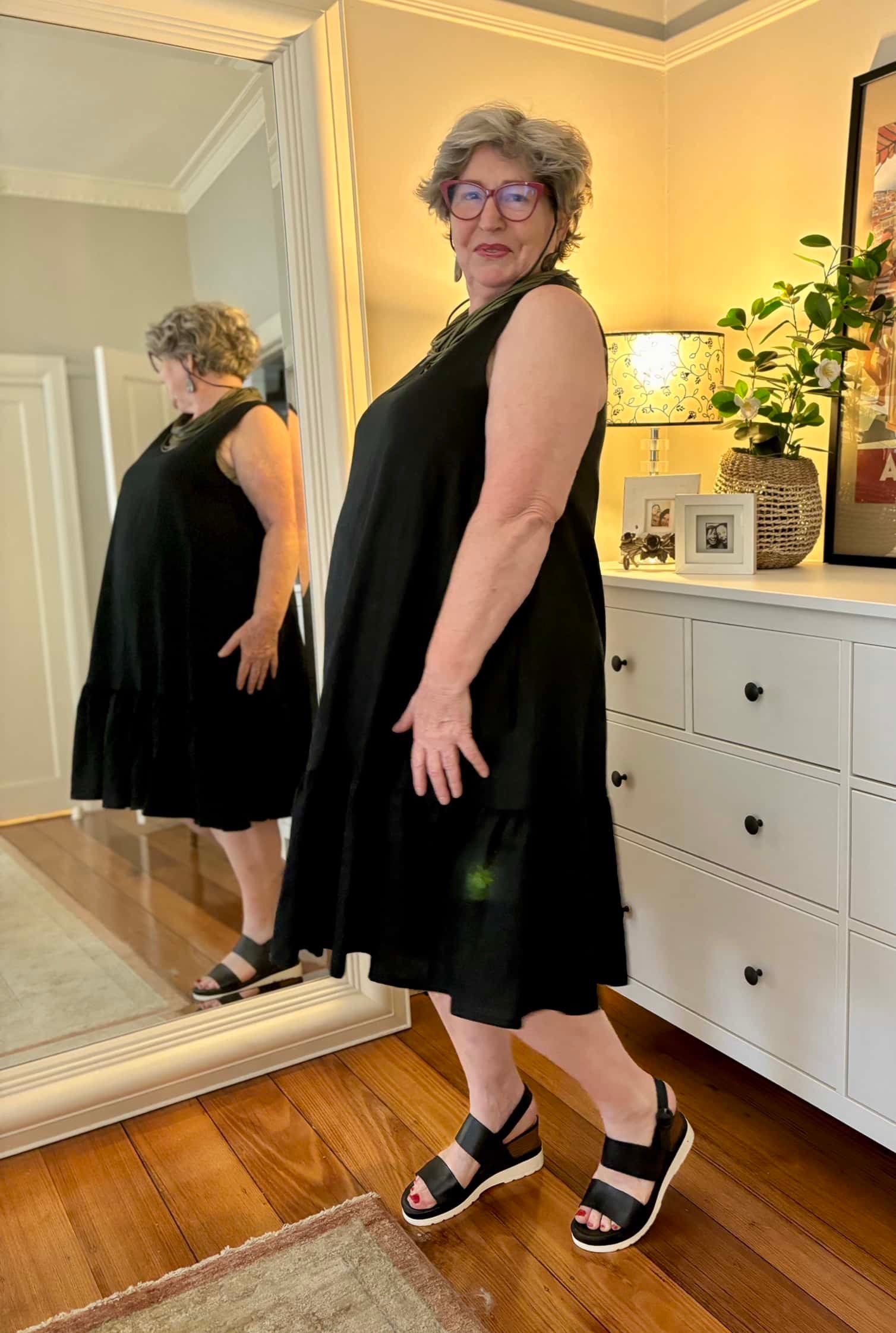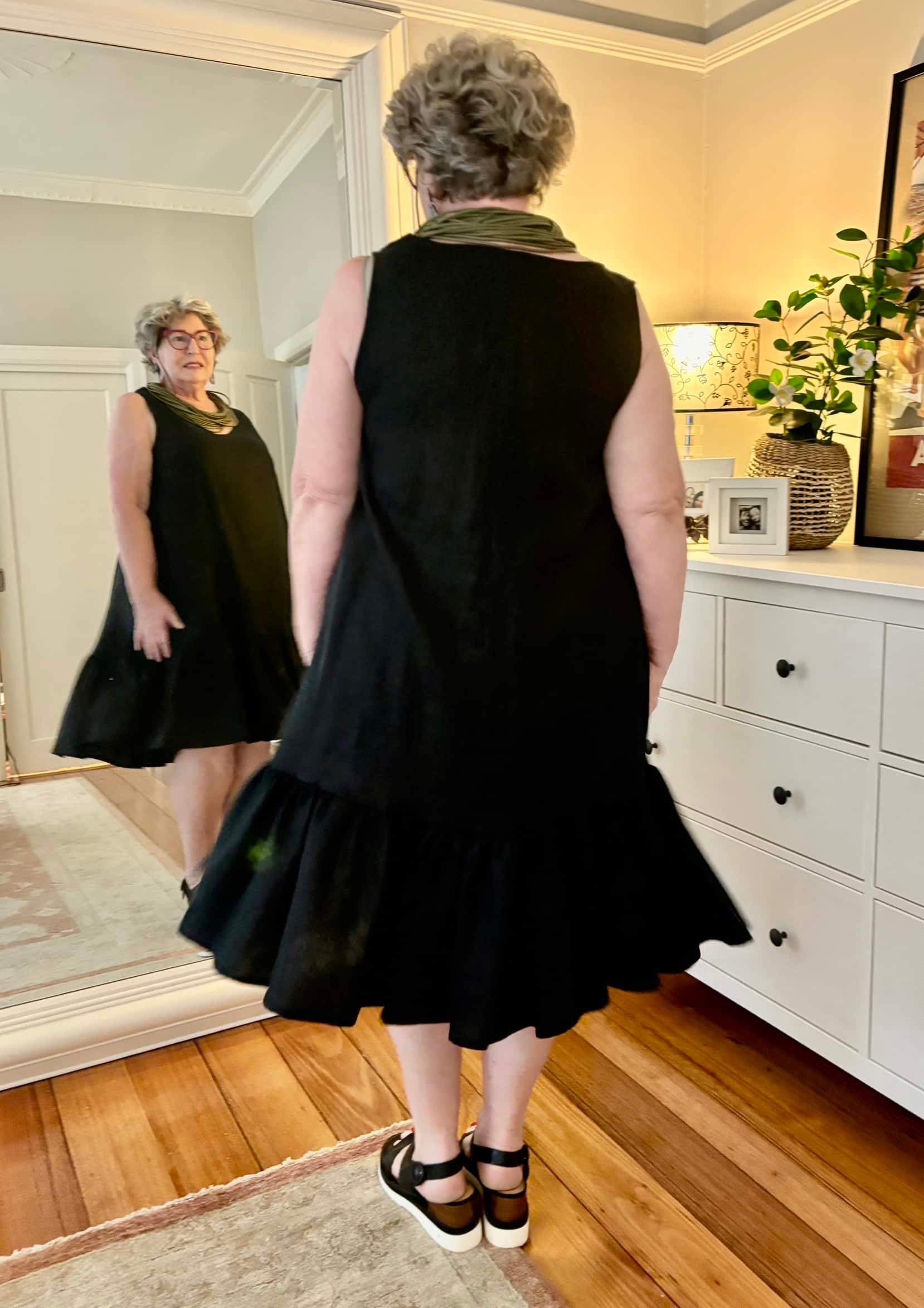 Sleeveless, with a soft V-neck, side pockets and a deep ruffle - perfect for swishing - the Puckle Street Ruffle is one stylish dress.