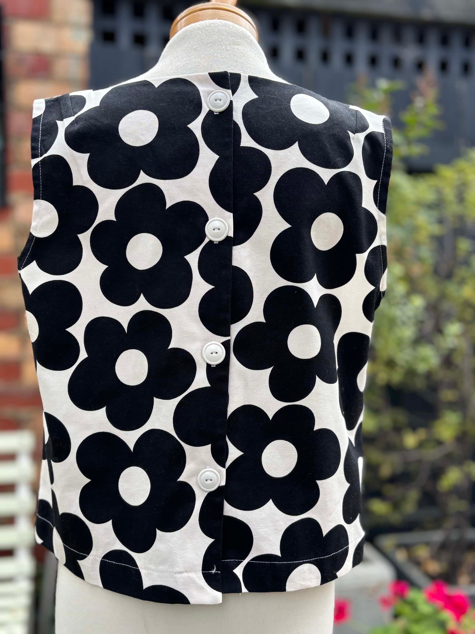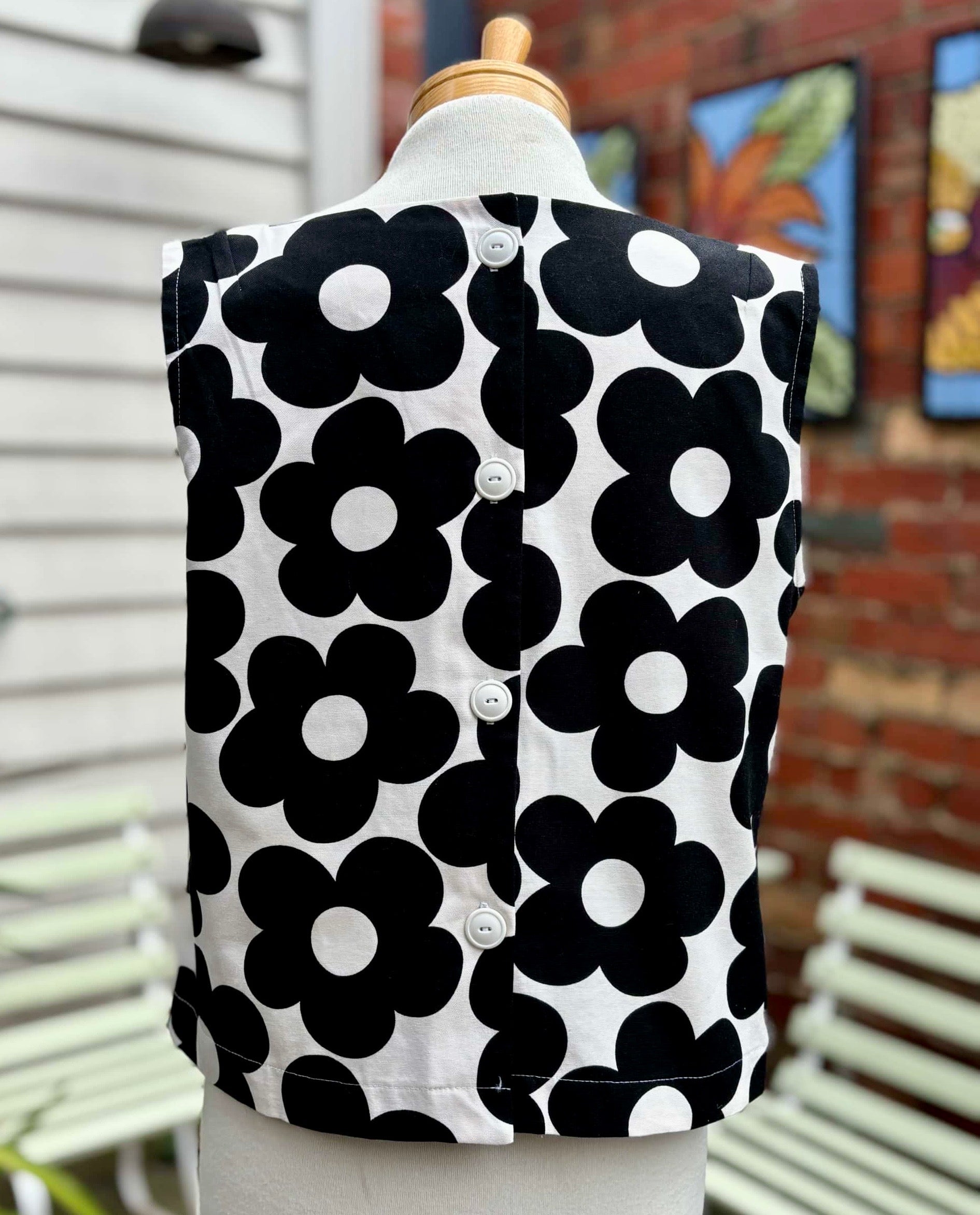 - Buttoned Back Closure: The top features a stylish buttoned closure that runs the length of the back, providing ease of wear and a unique design element.