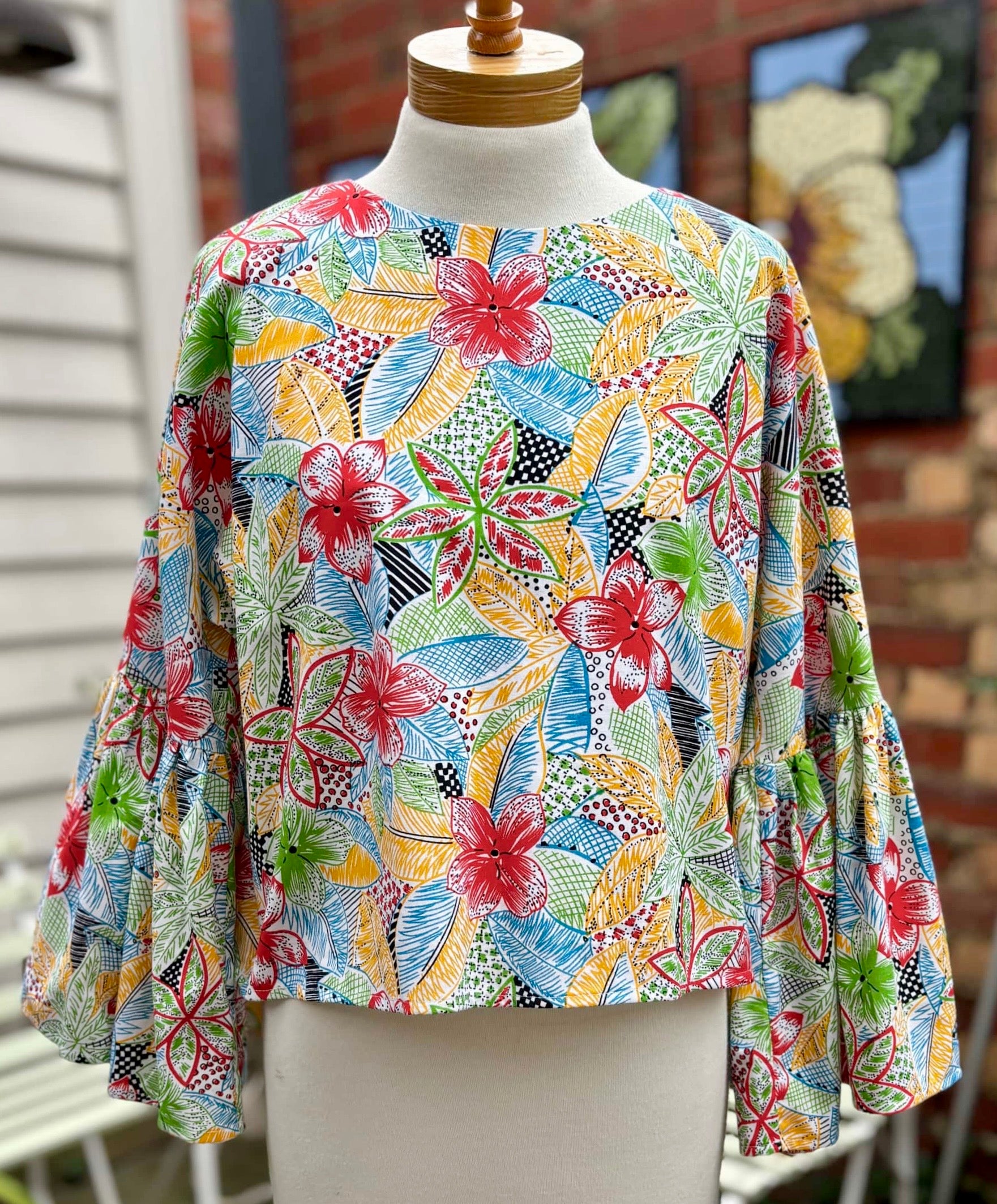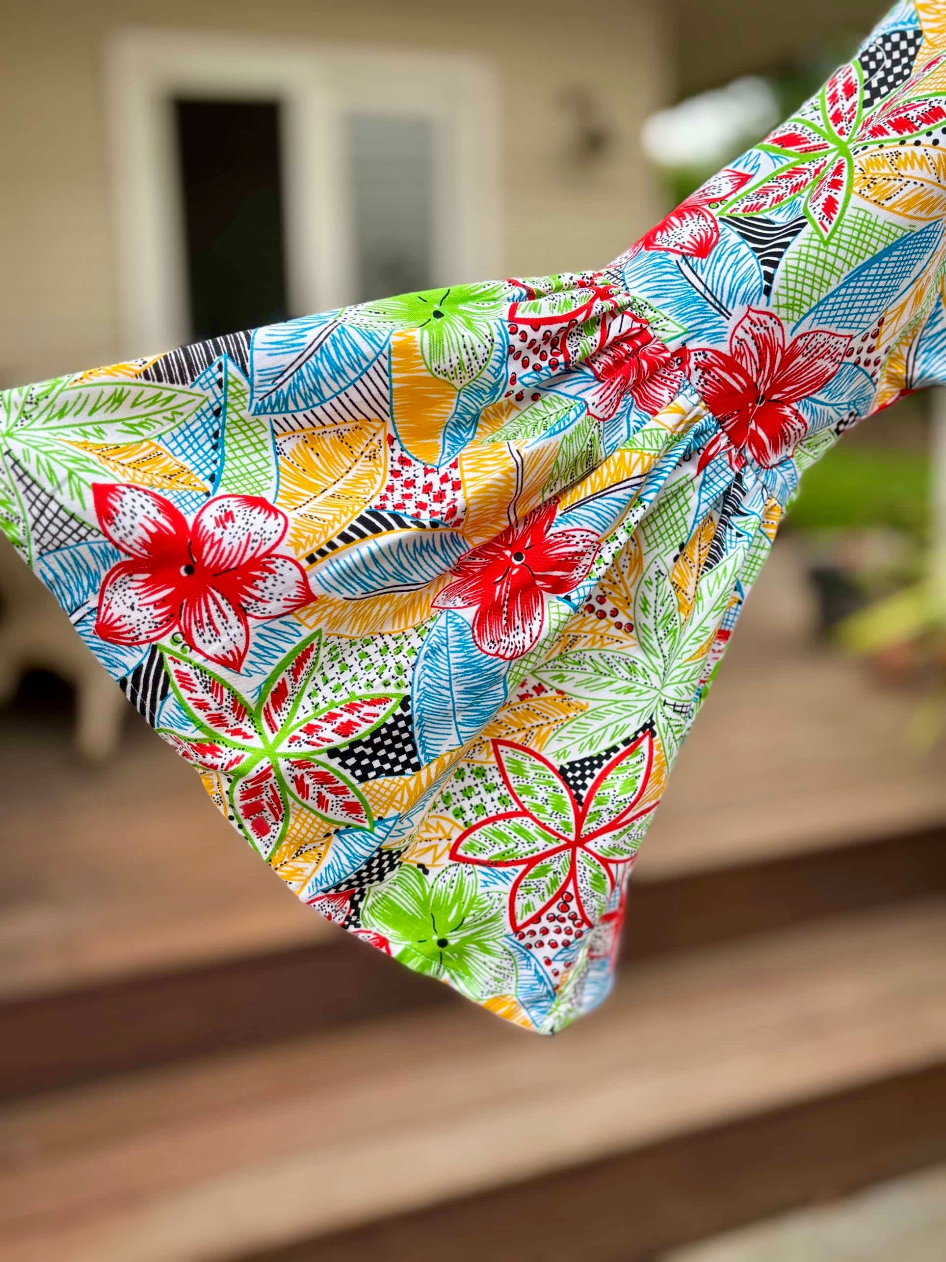 This version in a vibrant 1960s pattern, is sized medium and made from 100% cotton. It’s the only one in the size and colour way.
