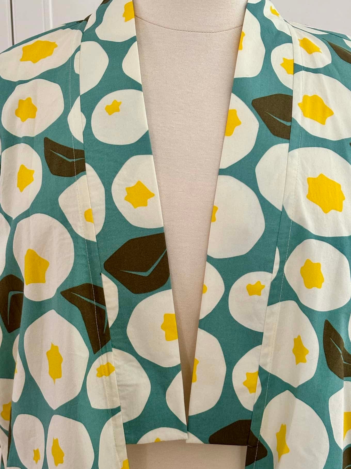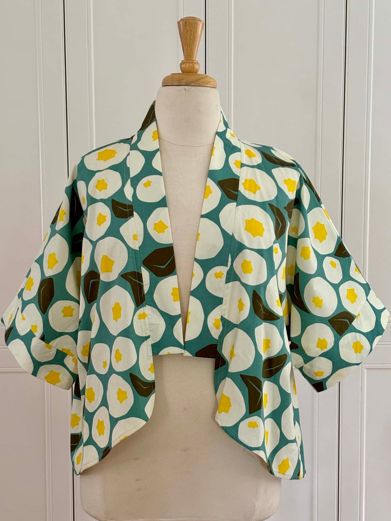 Based loosely on the Japanese HAORI jacket, the Harriet is a one-size-fits-all, for every occasion jacket. It features a shawl collar, three-quarter length sleeves, and a tuxedo back. This particular make is made from 100% cotton. She's truly unique, and of course, there's only one of her. So better be quick me thinks.